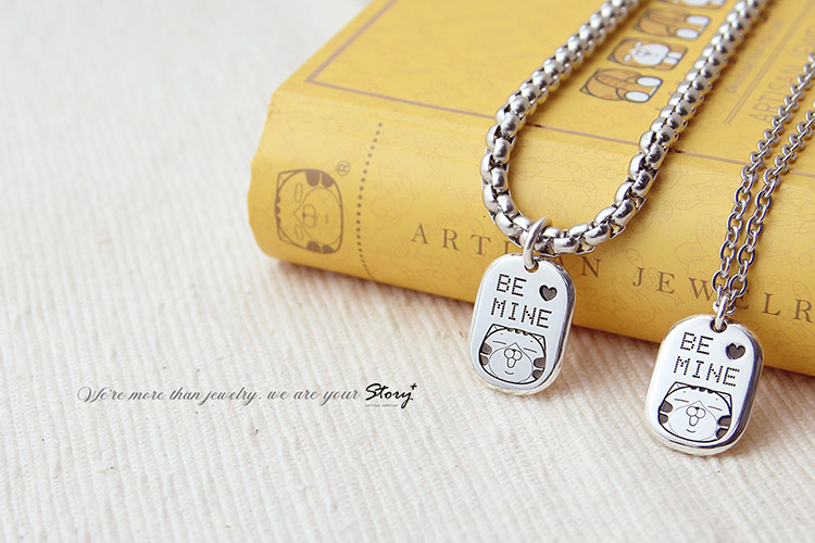 白爛貓與我系列-家族軍牌刻字-客製化純銀項鍊
