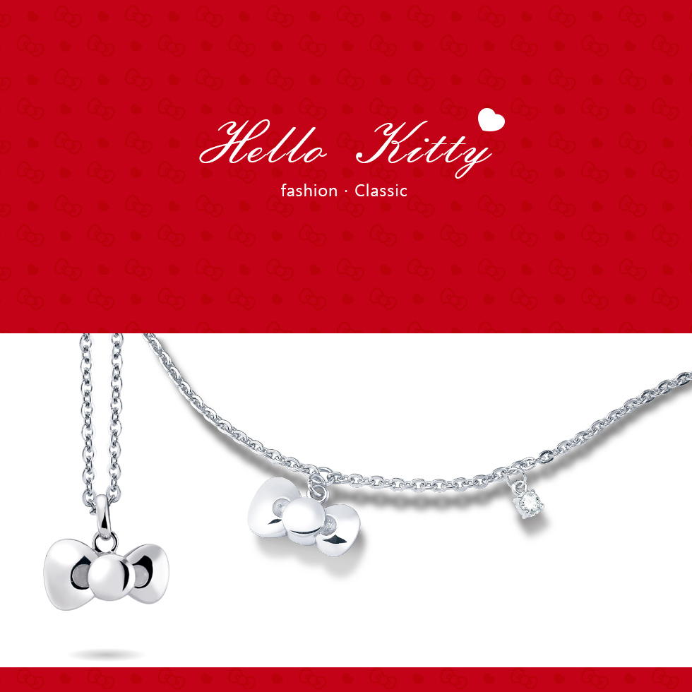 Hello Kitty凱蒂貓-夢幻蝴蝶結-銀飾墜子