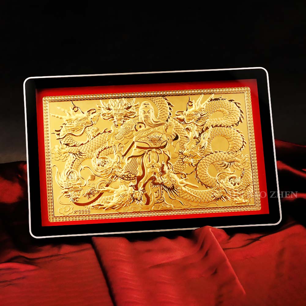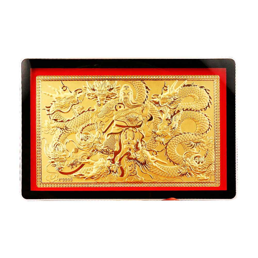 開運禮 關公御龍-相框式黃金擺件
