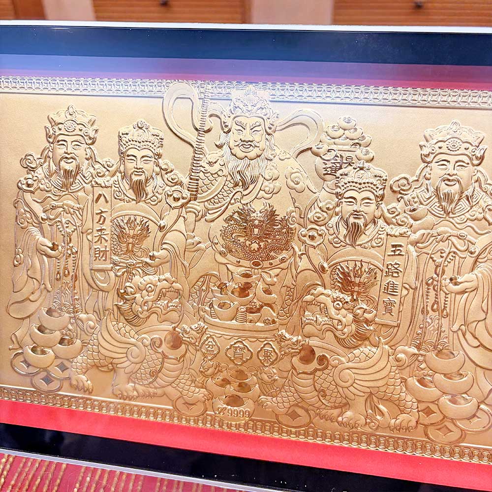 五路財神黃金金箔畫擺件